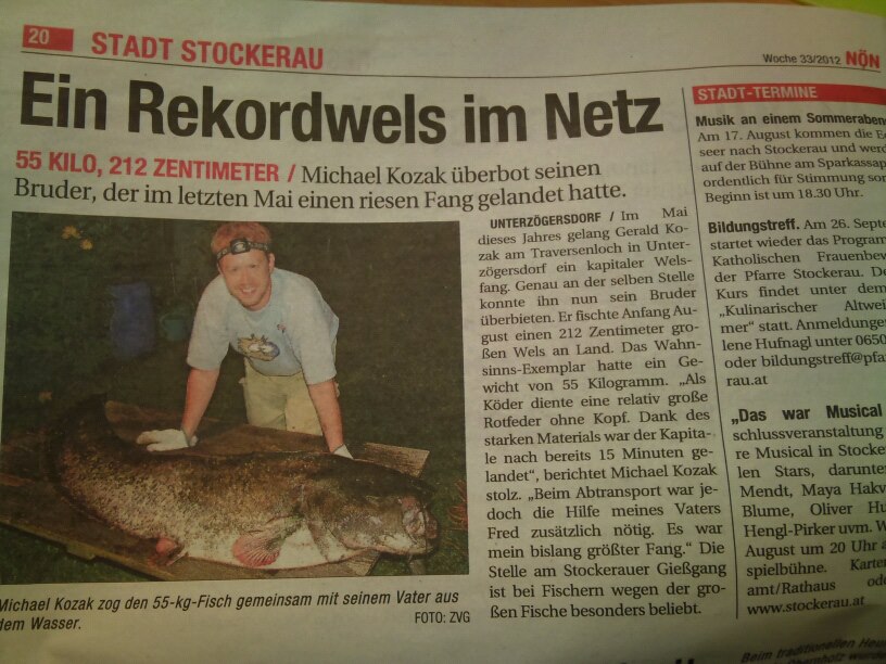 Der gefangene Wels wurde auch mit einem Bericht in diversen Zeitungen gezeigt!